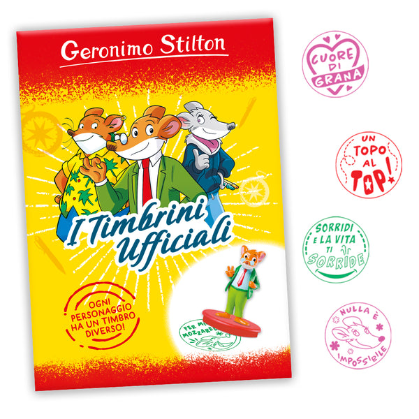 La prima collezione ufficiale dei timbrini del mondo Stilton: Geronimo Stilton, un tipo, anzi... un topo al top! Dirige l'Eco del Roditore e vorrebbe vivere una vita tranquilla, ma viene sempre catapultato in avventure stratopiche!
