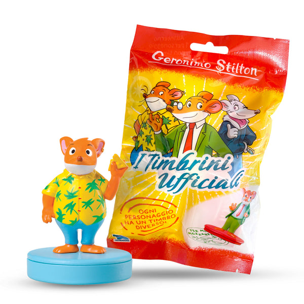 La prima collezione ufficiale dei timbrini del mondo Stilton: Trappola è un topolino tutto fare, dalla pelliccia marrone e lo sguardo malizioso.